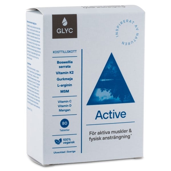 Stivhed er noget, de fleste af os har oplevet i perioder, og nogle besværes mere af det end andre. Glyc Active er et kosttilskud med boswellia serrata, gurkemeje, K2-vitamin, MSM og C-vitamin. C-vitamin har betydning for normal kollagendannelse, hvilket er vigtigt for knoglerne og leddenes normalfunktion. K2-vitamin fremmer sunde knoger.