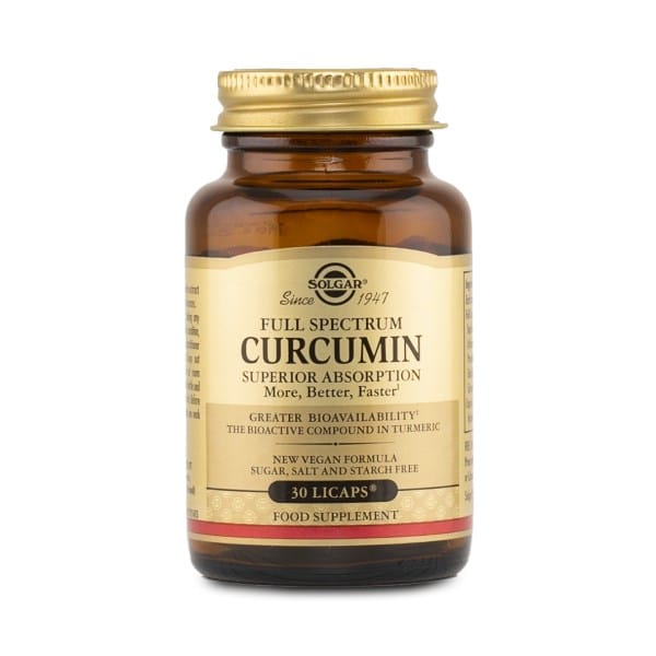 Solgar Full Spectrum Curcumin indeholder curcuminekstrakt fra gurkemeje med høj biotilgængelighed, som gør, at det lettere kan optages i kroppen. Curcumin indeholder curcuminoider, som er det stof, der er årsagen til gurkemejens velkendte gule farve. Curcumin har i flere undersøgelser vist sig at have en antioxiderende funktion. Antioxidanter er stoffer, som hjælper med at beskytte kroppens celler mod oxidativt stress.